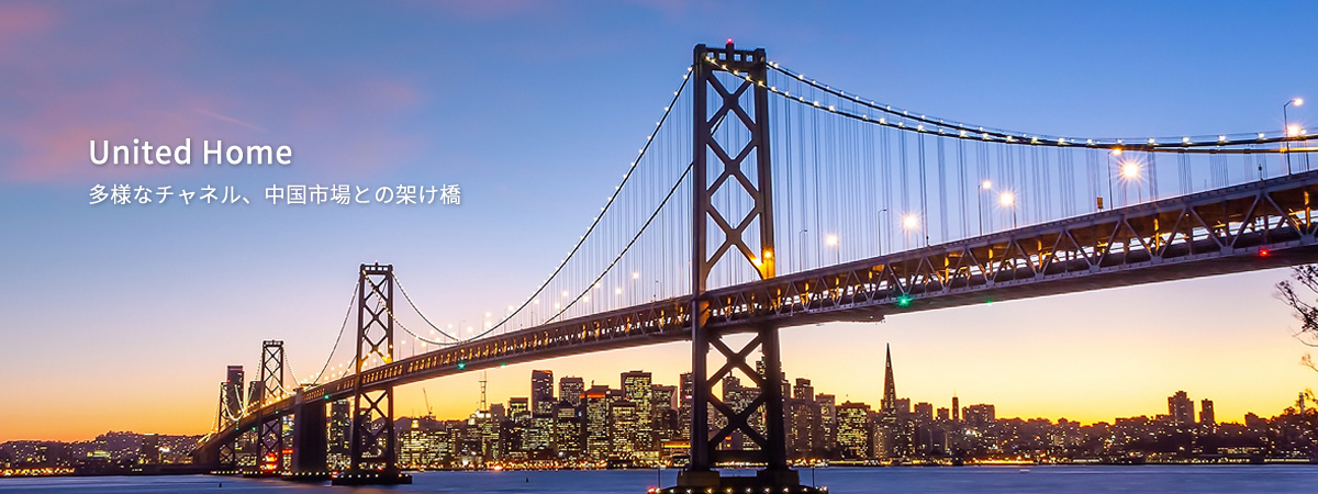 United Home日本「全称:United Home 株式会社」はUnited Home中国「全称:United Home International Supply Chain Co.,Ltd」が日本に設立したバイヤー会社として、日本の中小企業のブランド及び製品を中國市場に輸出するための支援に力を入れています。